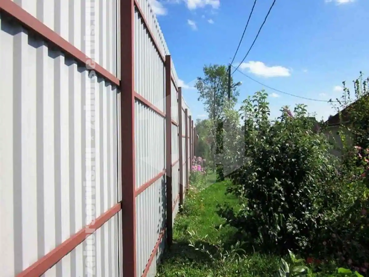 Если не брать во внимание процедуру согласования, то на монтаж 35 метров забора из профнастила понадобится один дней. Все материалы для выполнения есть всегда в наличии.